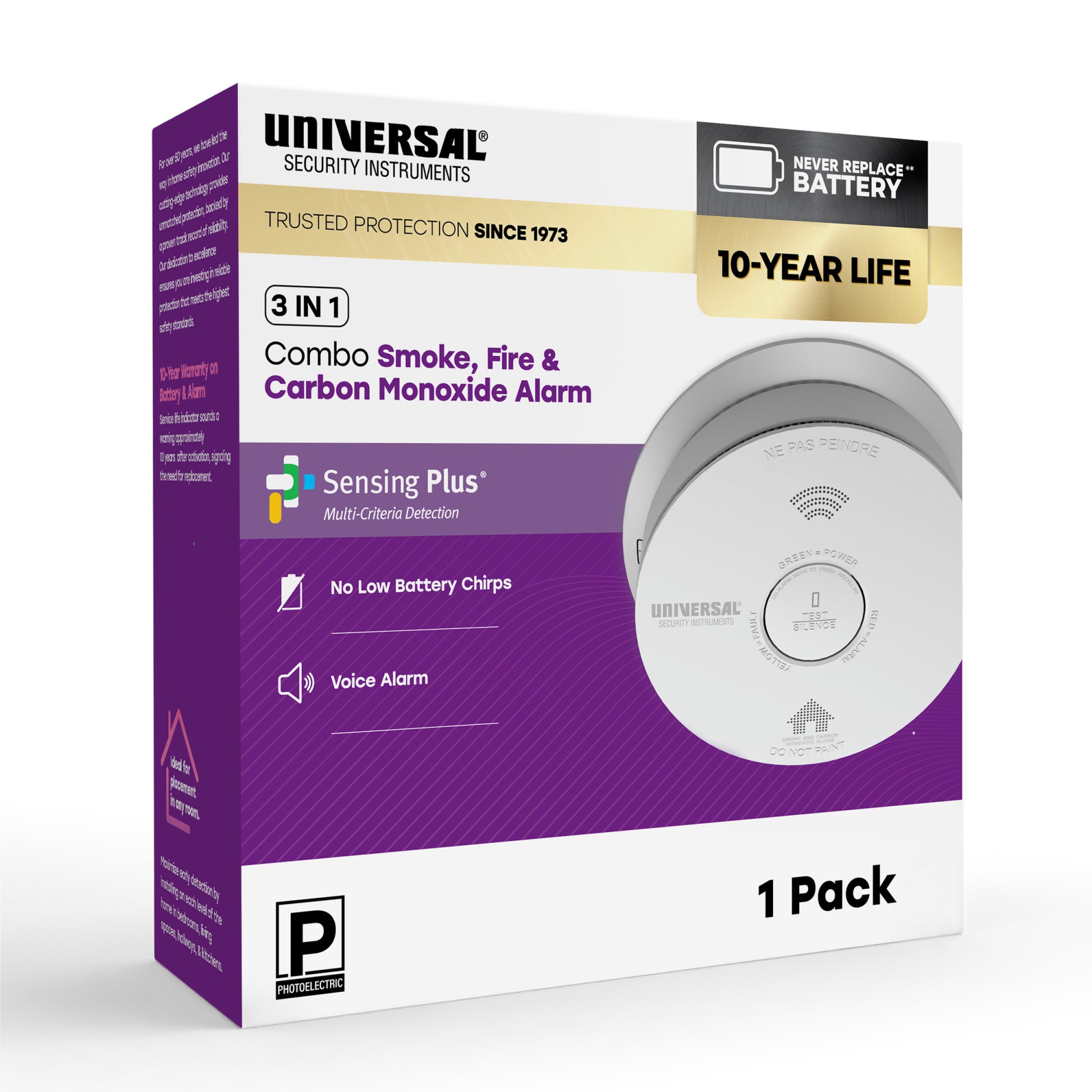 Experience unparalleled protection with the USI Combo Smoke, Fire, and Carbon Monoxide 10-Year Battery Alarm. Equipped with Sensing Plus Multi-Criteria Detection, this advanced photoelectric alarm accurately identifies both slow-burning and fast-flaming fires, ensuring early detection and rapid response. An included electrochemical sensor detects carbon monoxide, for a single compact home safety solution. The 10-Year sealed battery ensures continuous protection, even during power failures. It replaces annoying low-battery chirps with a single end-of-life alert after 10 years to remind you it's time to replace your smoke alarm. The voice alarm feature offers clear guidance differentiating between fire and CO alerts and replacement reminders. Advanced technology reduces nuisance alarms, minimizing disruptions from activities like cooking. Should you experience a false alarm, easily silence it with the test/silence button. With UL certification, you can trust in the reliability and performance of USI Combo Alarms. Invest in peace of mind and protect your loved ones with this advanced home safety solution. With over 50 years of experience as a leader in home safety, USI provides reliable, long-lasting protection for your home.