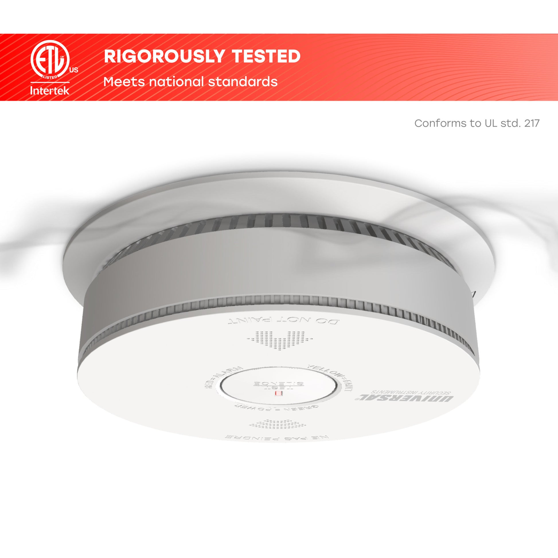 Experience unparalleled protection with the USI Hardwired Smoke Alarm with 10-Year Battery Backup. Equipped with Sensing Plus Multi-Criteria Detection, this advanced photoelectric alarm accurately identifies both slow-burning and fast-flaming fires, ensuring early detection and rapid response. This hardwired alarm connects to other hardwired alarms in the home to provide comprehensive coverage throughout the space. The 10-Year sealed backup battery ensures continuous protection and replaces annoying low-battery chirps with a single end-of-life alert after 10 years to remind you it's time to replace your smoke alarm. This alarm features a voice alarm, offering clear guidance differentiating between fire alerts and replacement reminders. Advanced technology reduces nuisance alarms, minimizing disruptions from activities like cooking. Should you experience a false alarm, easily silence it with the test/silence button. With UL certification, you can trust in the reliability and performance of USI Hardwired Smoke Alarms. Invest in peace of mind and protect your loved ones with this advanced home safety solution. With over 50 years of experience as a leader in home safety, USI provides reliable, long-lasting protection for your home.