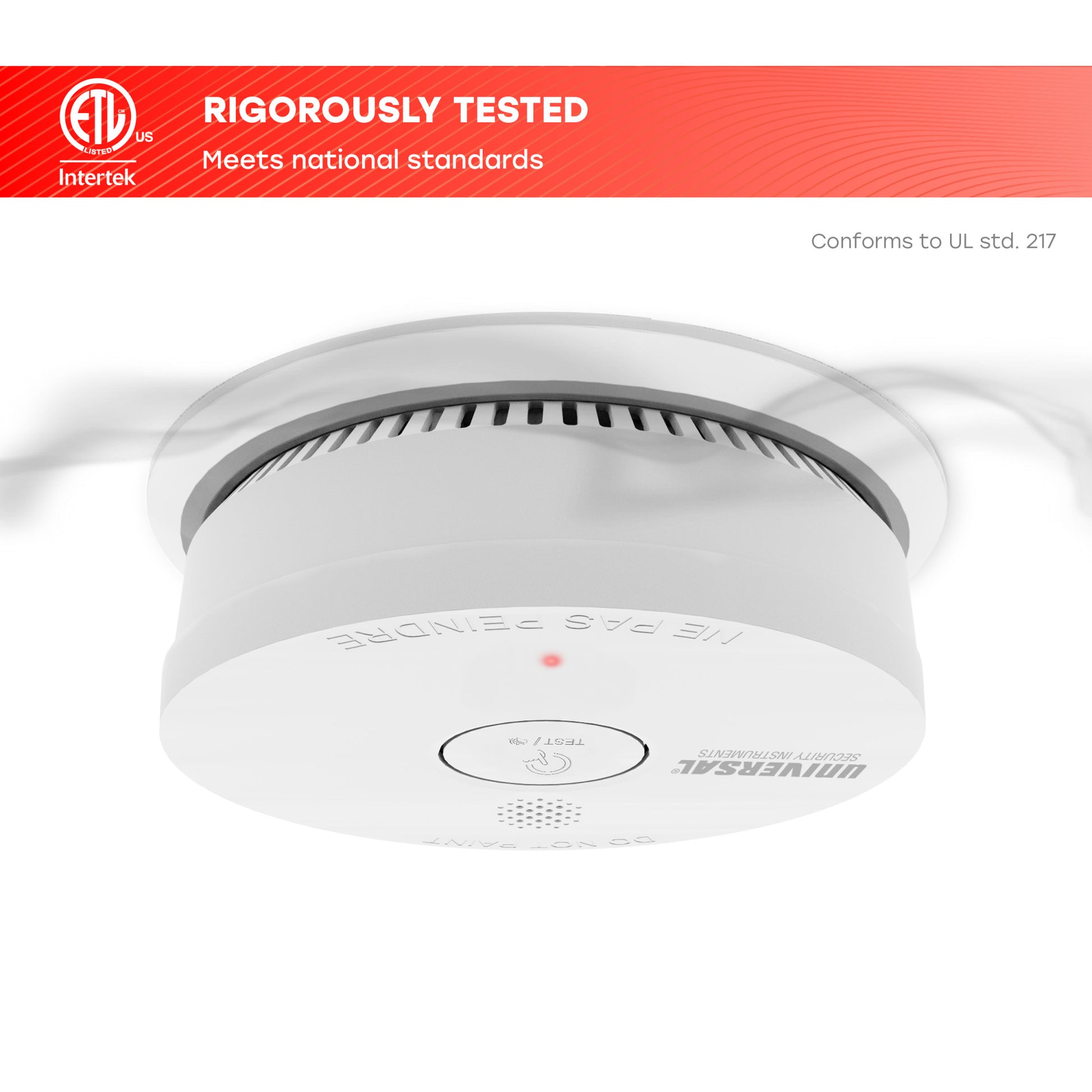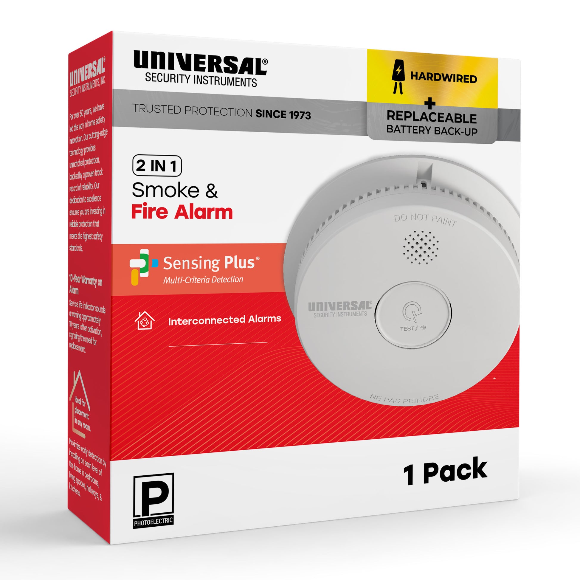 Experience unparalleled protection with the USI Hardwired Smoke Alarm with Replaceable Battery Back-up. Equipped with Sensing Plus Multi-Criteria Detection, this advanced photoelectric alarm accurately identifies both slow-burning and fast-flaming fires, ensuring early detection and rapid response. This hardwired alarm connects to other hardwired alarms in the home to provide comprehensive coverage throughout the space. An included replaceable 9V battery ensures continuous protection even during outages. An End-of-life alert reminds you it’s time to replace your smoke alarm after 10 years for uninterrupted coverage. Advanced technology reduces nuisance alarms, minimizing disruptions from activities like cooking. Should you experience a false alarm, easily silence it with the test/silence button. With UL certification, you can trust in the reliability and performance of USI Hardwired Smoke Alarms. Invest in peace of mind and protect your loved ones with this advanced home safety solution. With over 50 years of experience as a leader in home safety, USI provides reliable, long-lasting protection for your home.