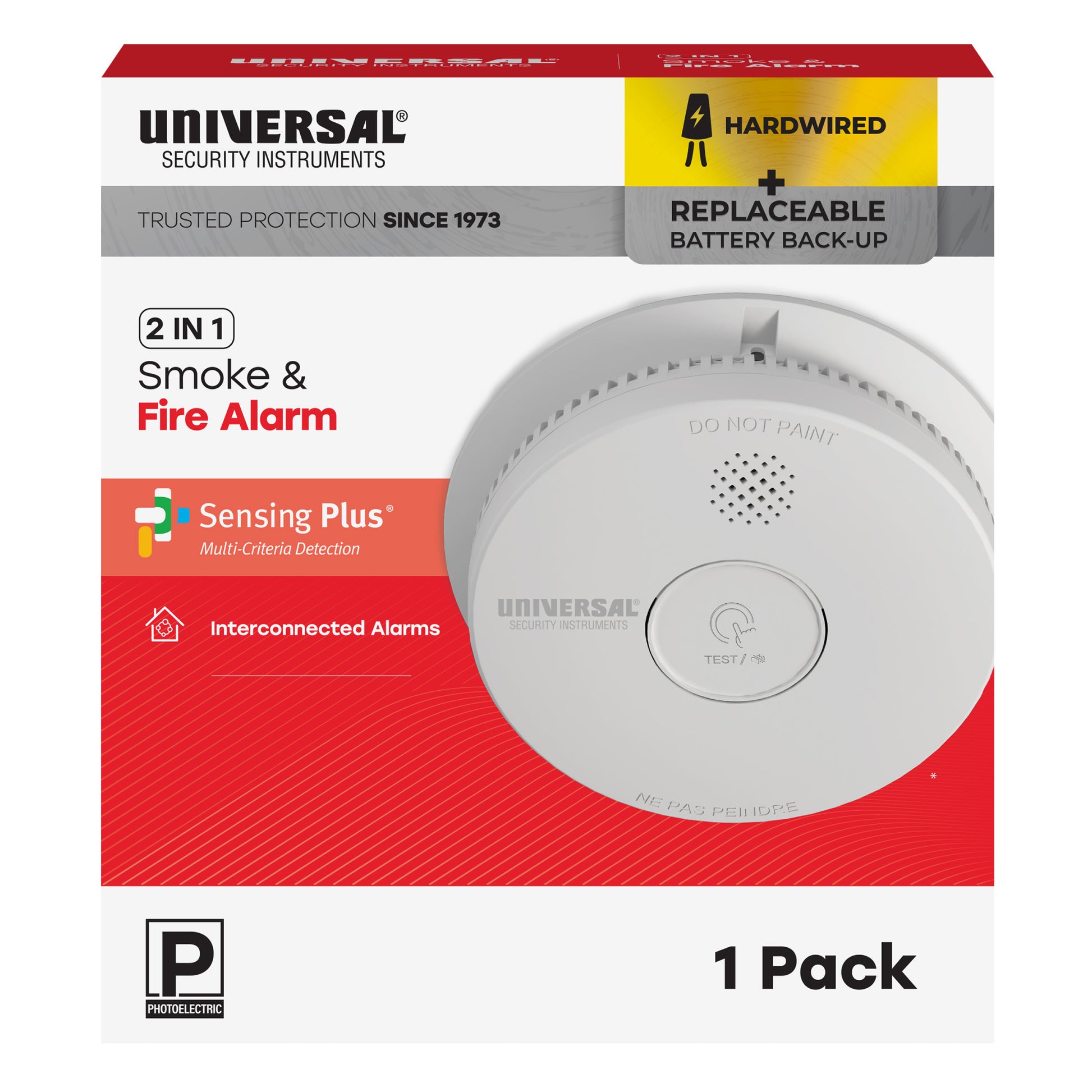 Experience unparalleled protection with the USI Hardwired Smoke Alarm with Replaceable Battery Back-up. Equipped with Sensing Plus Multi-Criteria Detection, this advanced photoelectric alarm accurately identifies both slow-burning and fast-flaming fires, ensuring early detection and rapid response. This hardwired alarm connects to other hardwired alarms in the home to provide comprehensive coverage throughout the space. An included replaceable 9V battery ensures continuous protection even during outages. An End-of-life alert reminds you it's time to replace your smoke alarm after 10 years for uninterrupted coverage. Advanced technology reduces nuisance alarms, minimizing disruptions from activities like cooking. Should you experience a false alarm, easily silence it with the test/silence button. With UL certification, you can trust in the reliability and performance of USI Hardwired Smoke Alarms. Invest in peace of mind and protect your loved ones with this advanced home safety solution. With over 50 years of experience as a leader in home safety, USI provides reliable, long-lasting protection for your home.
